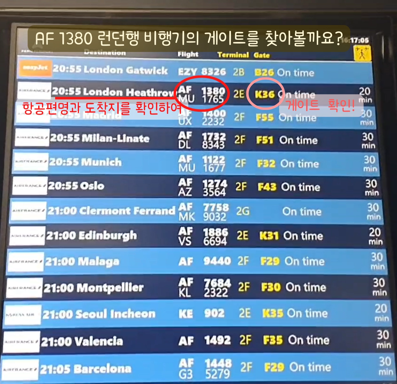 → 전광판에서 게이트 찾아 게이트로 이동
