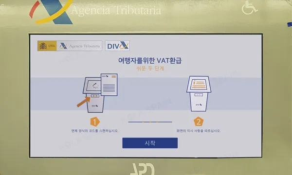 택스리펀 서류의 바코드를 기계에 읽히기