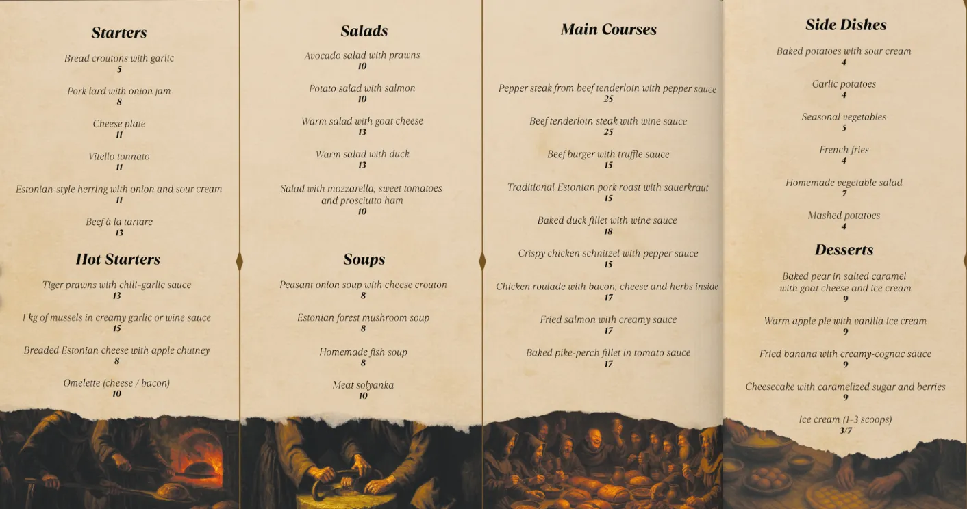 탈린 구시가지 캐서린 통로 인근에 위치한 유럽식 레스토랑으로, 아늑한 분위기와 다양한 유럽 요리를 즐길 수 있는 곳이에요.