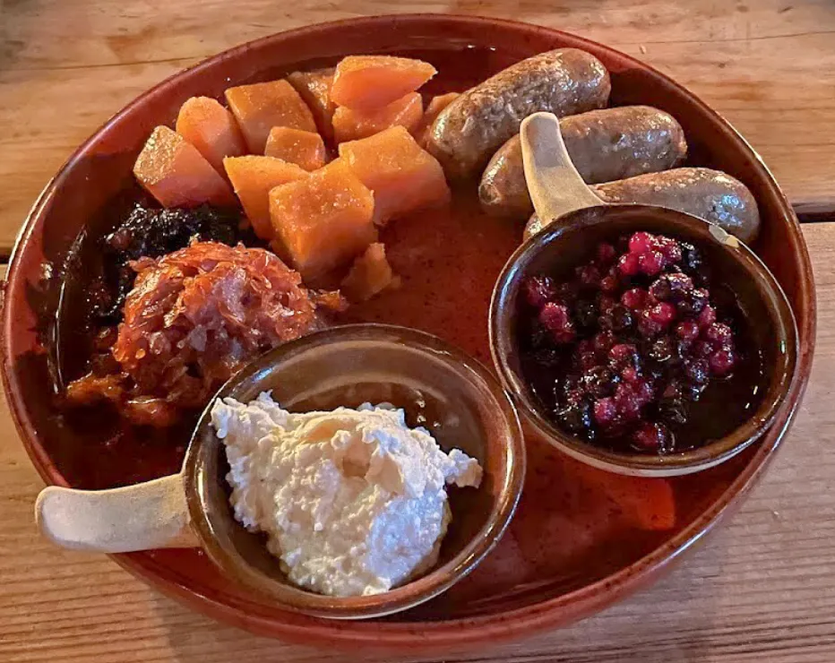에스토니아아 전통에 기반한 돼지고기구이 요리예요. 로즈메리·백리향 같은 허브, 꿀·사과 조각, 발효 소스로 향과 질감의 깊이를 다르게 만들어 줘요.