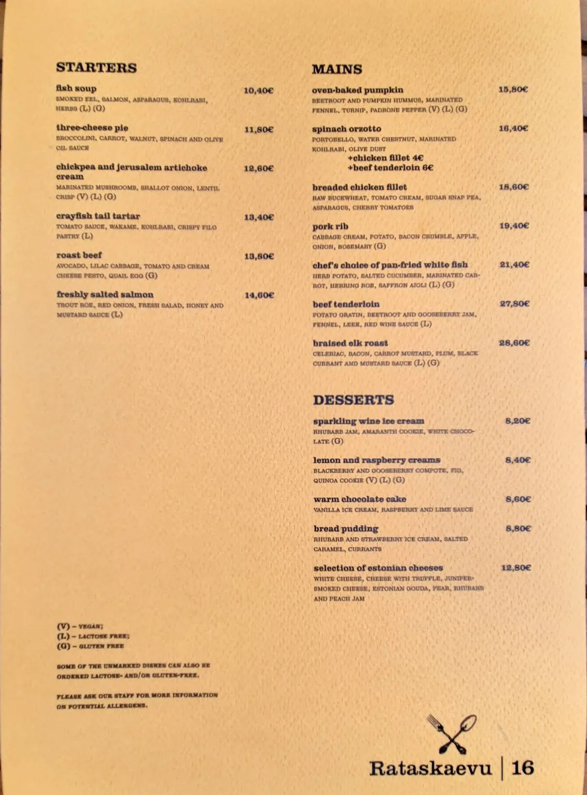 탈린 올드타운 중심부에 있는 현지인과 여행객 모두가 사랑하는 레스토랑으로, 아늑한 분위기와 섬세한 플레이트가 특징이에요. 예약 없이 가면 자리가 없을 만큼 인기 많고, 따뜻한 서비스와 함께 빵부터 디저트까지 훌륭해요.