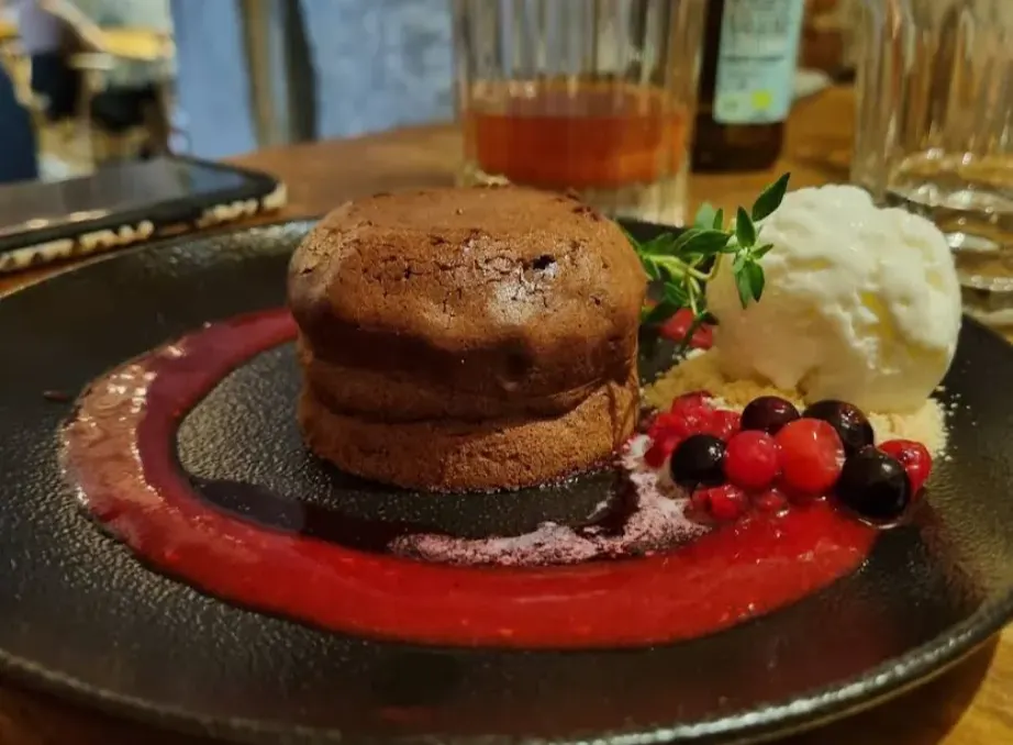 겉은 살짝 캐러멜라이즈, 속은 부드럽고 촉촉하게 완성되어, 전통 빵에 달콤한 매력을 더한 디저트예요. 라즈베리 파르페나 캐러멜 소스처럼 상큼하면서 달콤한 소스와 함께 나와요.