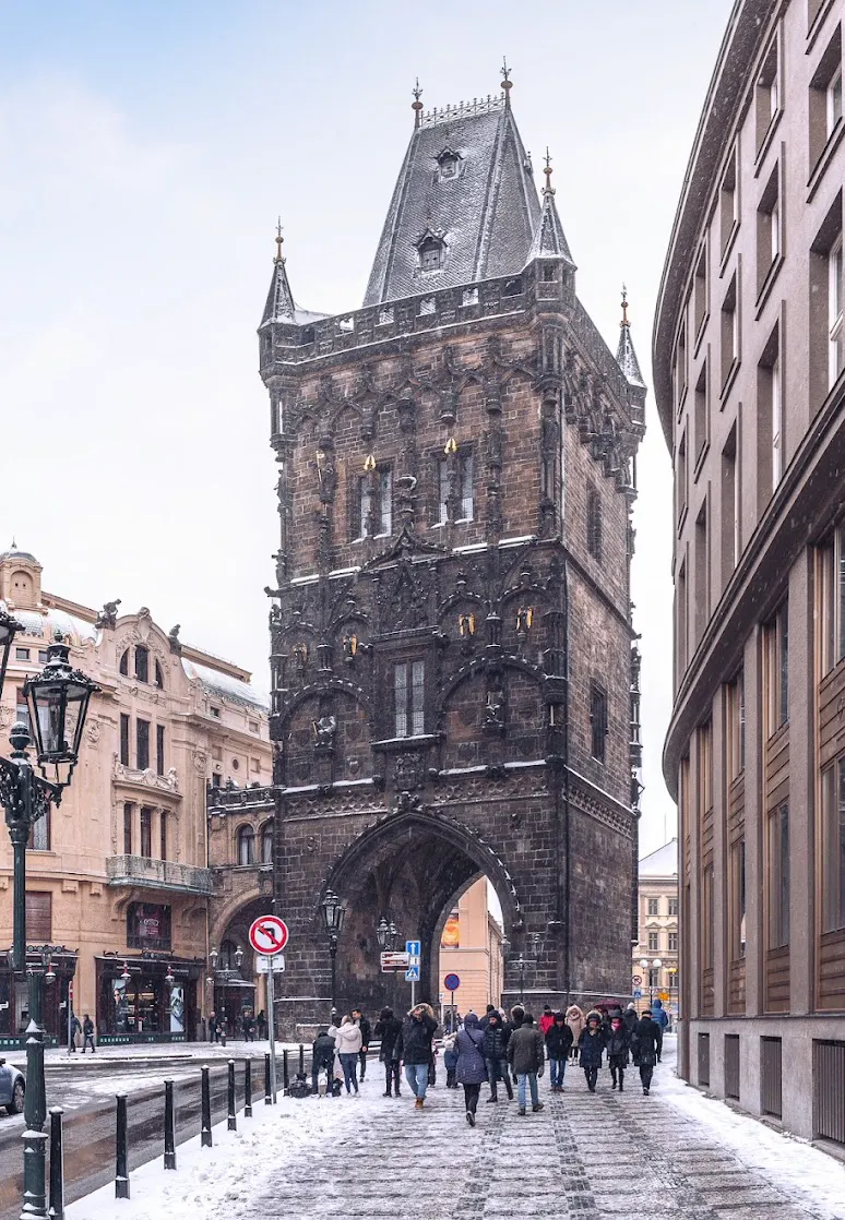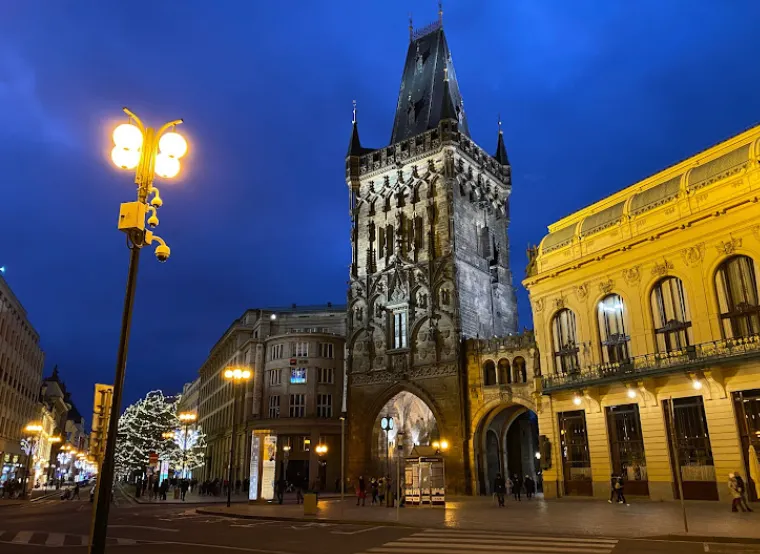구시가지와 신시가지를 연결하는 출입문인 ‘화약탑’은 중세 시대 도시를 둘러싼 성벽의 13개 탑 문 중 현재까지 남아있는 유일한 문이에요. 문 이름이 화약 탑인 이유는 18세기 프-러시아 전쟁 당시 화약 저장고로 이용되었기 때문이에요. 그리고 186개의 계단을 올라가면 프라하 구시가지 전경을 볼 수도 있어요!