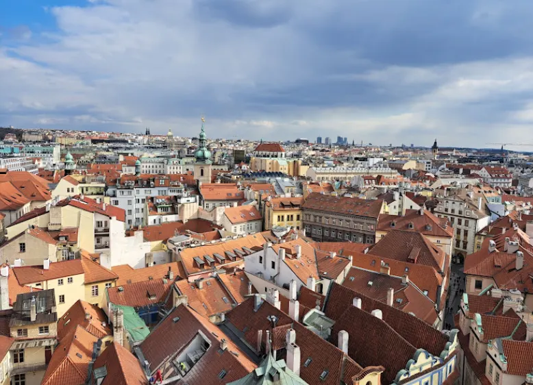 내부 입장 후 엘리베이터를 타고 올라가면 프라하 전경을 360도로 볼 수 있는 전망대가 있어요. (유료)