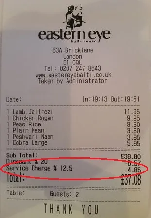 영국에서는 메뉴판에 “Service Charge”가 쓰여있는지 미리 확인하기
