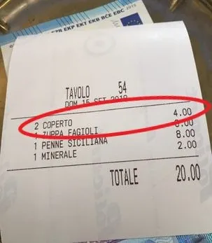 이탈리아에서는 메뉴판에 적힌 “Coperto”의 금액을 미리 확인하기