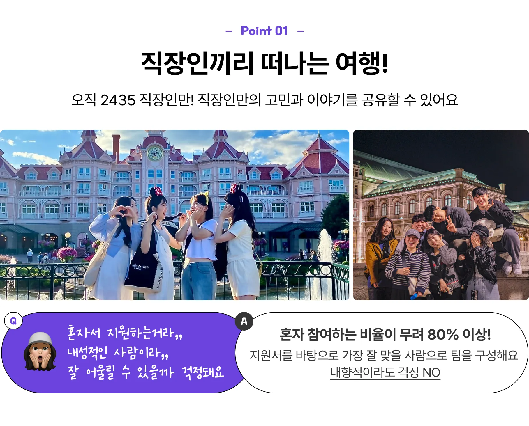 조원들과 함께 때로는 혼자서 자유롭게 나의 여행을 즐기세요