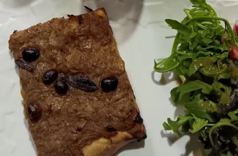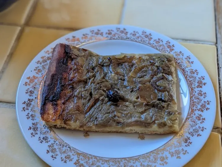 피살라디에르는 프랑스 남부 프로방스 지방의 전통 요리로 이탈리아의 피자와 유사해요. 보통은 치즈나 토마토 소스 없이 볶은 양파, 피살라 양념, 앤초비, 블랙 올리브 등을 올려 구워 먹는답니다.