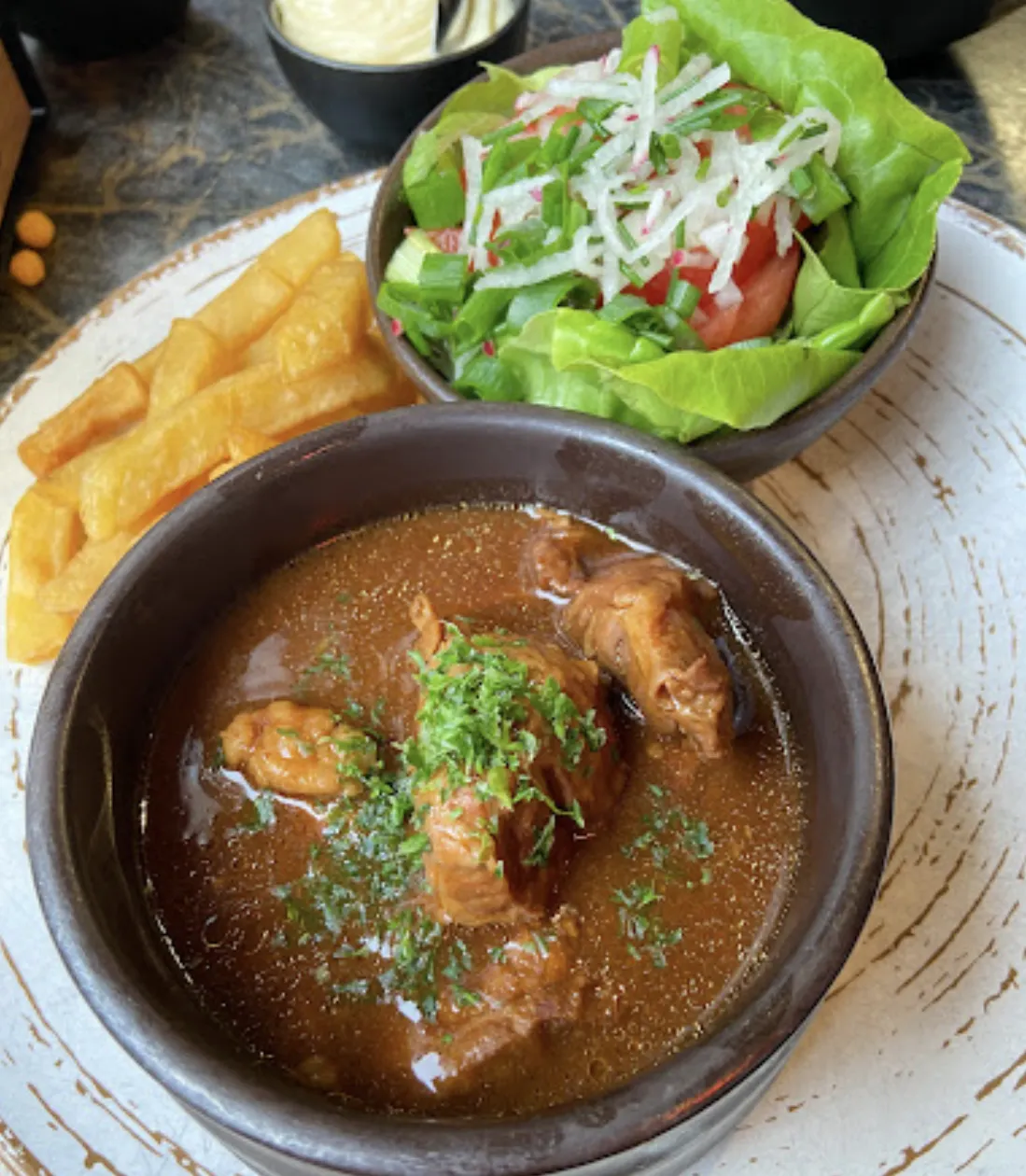 Flemish stew with pork cheeks, Westmalle and Tierenteyn mustard