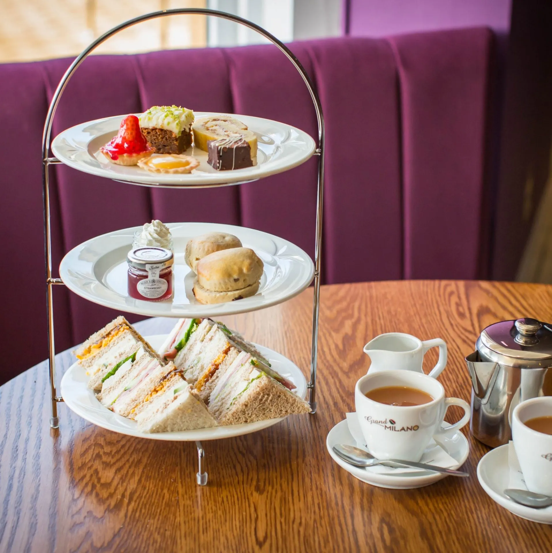 귀족들이 점심과 저녁 사이의 허기를 달래고자 간단한 다과와 함께 티 타임을 가졌던 것에서 유래한 애프터눈 티(Aftenoon Tea)는 이제 영국에서 빠질 수 없는 문화 중 하나로 자리 잡았답니다. 따뜻한 홍차와 3단 트레이에 담겨 나오는 샌드위치, 스콘, 케이크 등의 핑거 푸드와 디저트를 아래에서 위로 올라가며 먹어요!