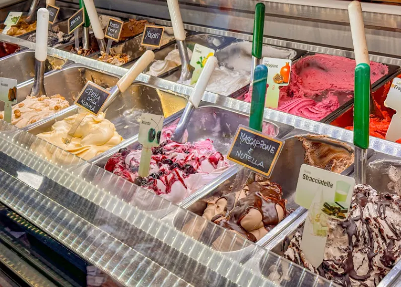 간식 말고 시원한 젤라또가 땡긴다면 바로 옆에 있는 젤라또 가게를 추천해요. 시에나 안에서도 젤라또 맛집으로 손 꼽히는 곳이랍니다. 여름에 여행한다면 여름 특별 메뉴인 ‘수박맛’을 꼭 먹어보세요! 더위가 싹 가실 걸요?