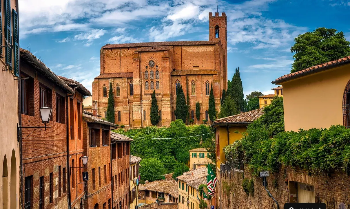 이제 시에나 여행의 마지막 코스인 산 도메니코 대성당이에요. 외관은 수수하나, 성당 안에서는 시에나에서 유명한 ‘성 카타리나의 머리’를 비롯한 여러 유물을 볼 수 있죠. 언덕 위에 위치한 산 도메니코 성당에서 절대 놓치지 말아야 할 것은 바로 높은 곳에서 바라보는 시에나의 전경이에요. 올라갈 때는 조금 숨이 찰 수도 있지만, 시에나를 한 눈에 바라보면 그 생각은 훨훨 날아갈 거예요!