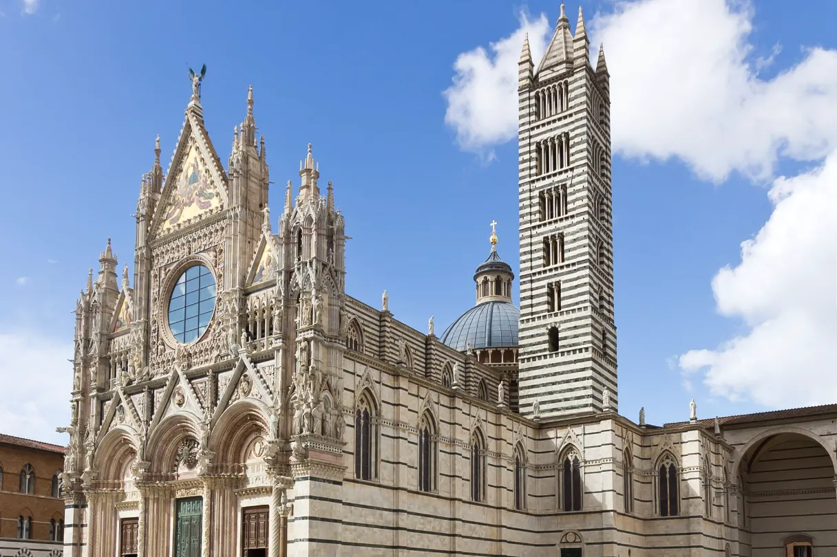 시에나에 왔다면 시에나 대성당을 놓칠 수 없죠. 한 때 시에나와 피렌체는 서로 누가 더 강한지 겨루던 라이벌이었는데, 피렌체가 거대한 두오모를 건축한 것을 본 시에나는 ‘질 수 없다’며 시에나 대성당을 더욱 더 화려하고 아름답게 증축하기 시작했어요. 하지만 유럽을 강타한 흑사병이 시에나를 휩쓸어버려, 공사는 결국 중단되었답니다. 비록 시간 속에 멈춰버린 비운의 성당이지만, 완성된 부분만 봐도 위엄이 느껴지는 웅장하고 멋있는 성당이랍니다.