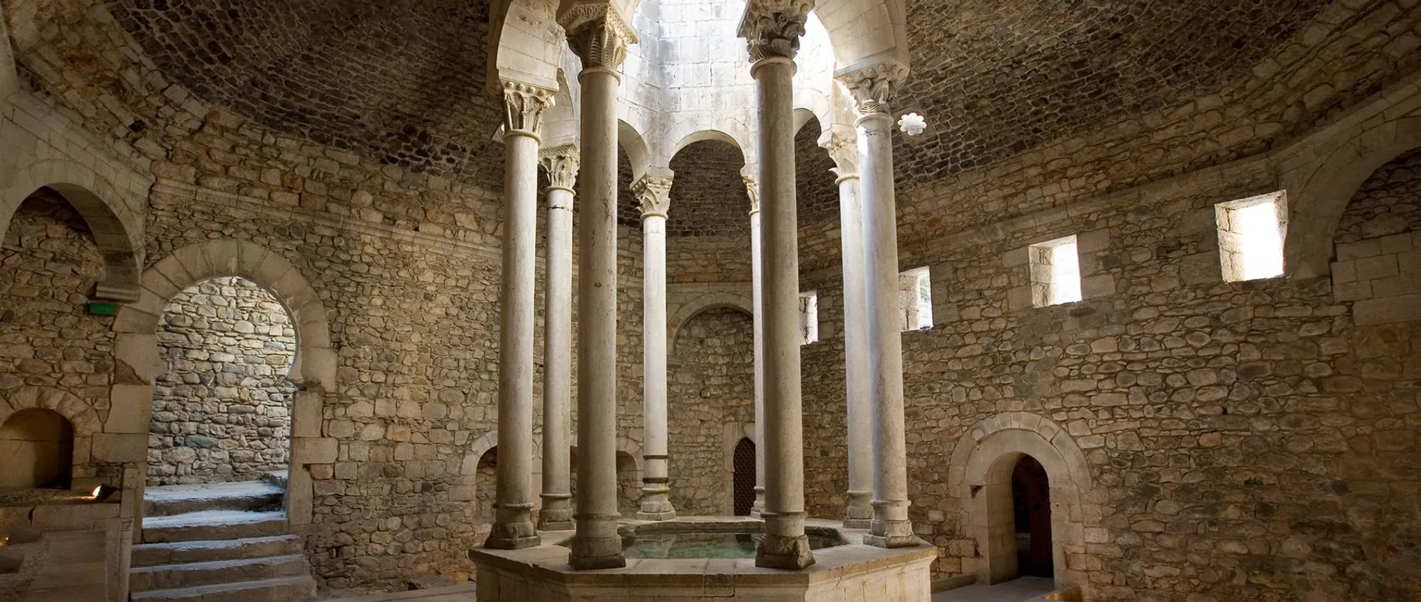 1194년(이전)부터 있었던 것으로 추정되는 대중 목욕탕으로 1285년 프랑스 필립 3세 군대의 포위 공격 중 부분적으로 파괴되었다가 1294년 제임스 2세 국왕 때 재건된 지로나의 역사적 기념물 중 하나에요. 한때 수녀원의 일부로 사용되기도 했습니다.
