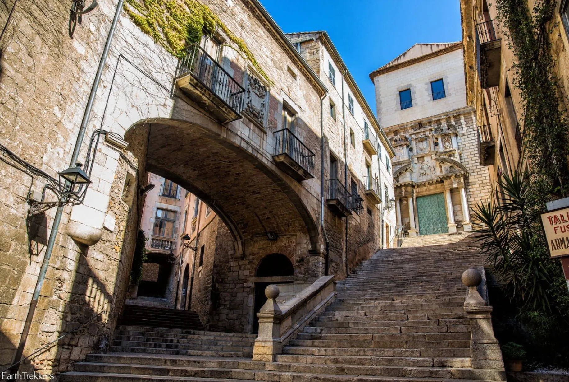쥐라 광장 바로 앞에 위치한 이 골목과도 같은 장소는 왕좌의 게임 시즌 6의 첫 번째 에피소드에서 아리아 스타크가 장님이 되어 구걸하며 방황하던 거리예요. 지로나를 방문하는 많은 팬들은 첫 번째 계단 모퉁이에 앉아 브라보스 거리에서 구걸하는 아리아인 척하는 사진을 찍곤 한답니다.