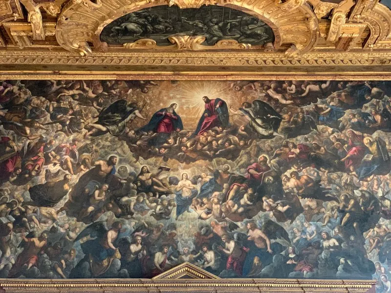’대평의회의 방(도제를 선출하던 방)’ 벽면에 있는 이탈리아 화가 '틴토레토'의 작품 '천국'이 특히 유명해요.