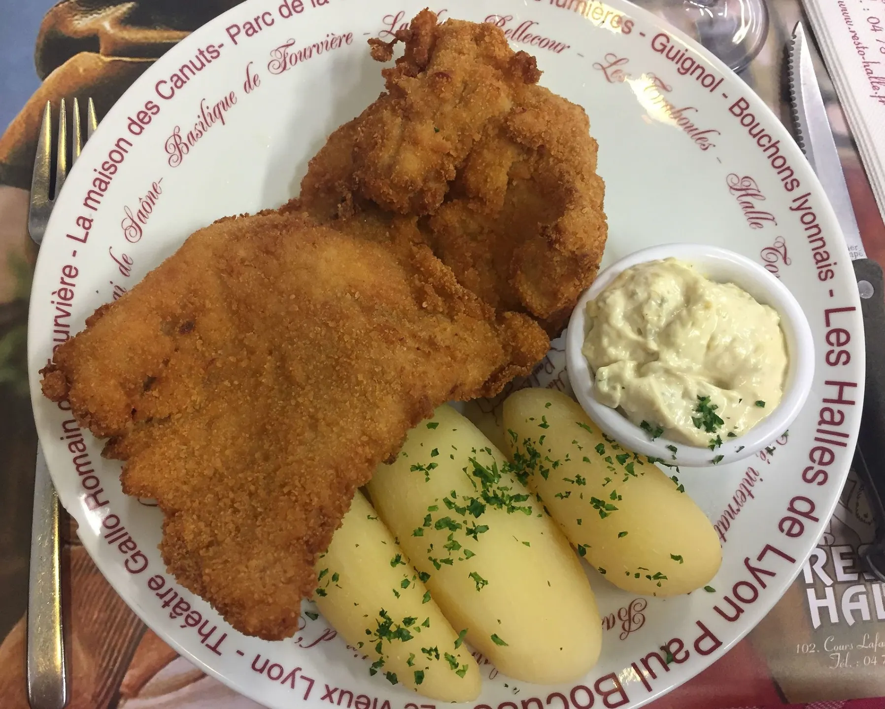 리옹에서 가장 맛있는 요리 중 하나로, ‘공병의 앞치마’라는 뜻을 가진 화이트 와인에 절이고 튀긴 쇠고기 곱창 요리예요. 곱창을 삶아 화이트 와인에 절인 후 빵가루를 뭍혀 튀겨내고, 쪽파를 얹은 찐 감자를 곁들여 먹어요.