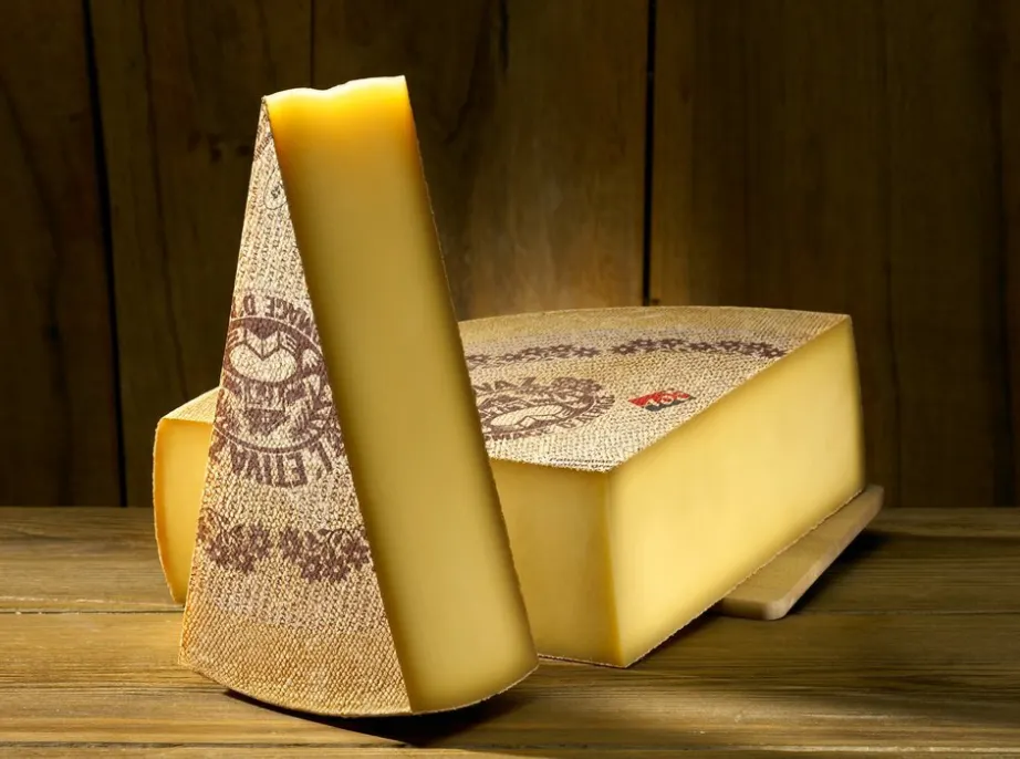 최소 4개월 동안 숙성하는 것이 가장 일반적이며, 견과류 향과 톡 쏘는 향, 신선한 건초 향이 특징이에요. 얇게 썰거나 큐브 형태로 잘라서 먹고 퐁듀를 만들 때에도 사용합니다.