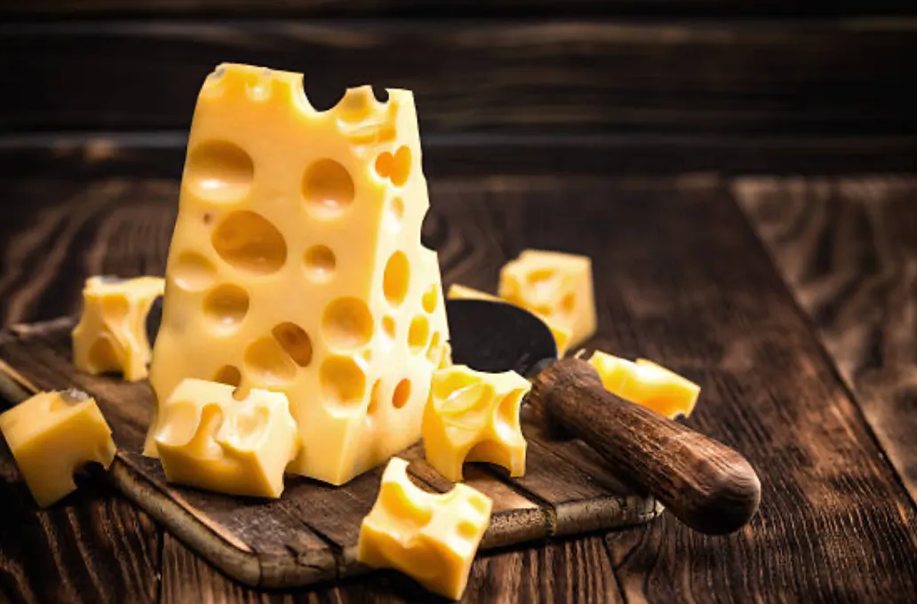 에멘탈치즈는 스위스를 대표하는 고품질 치즈예요. 특유의 구멍이 있는 치즈의 모습으로 유명하죠? 세계 각지에서 많은 사랑을 받는 스위스의 자랑으로 고유한 제조 공정과 특별한 맛으로 다양한 요리에 사용되며 치즈 판매량에서도 높은 점유율을 차지해요.
