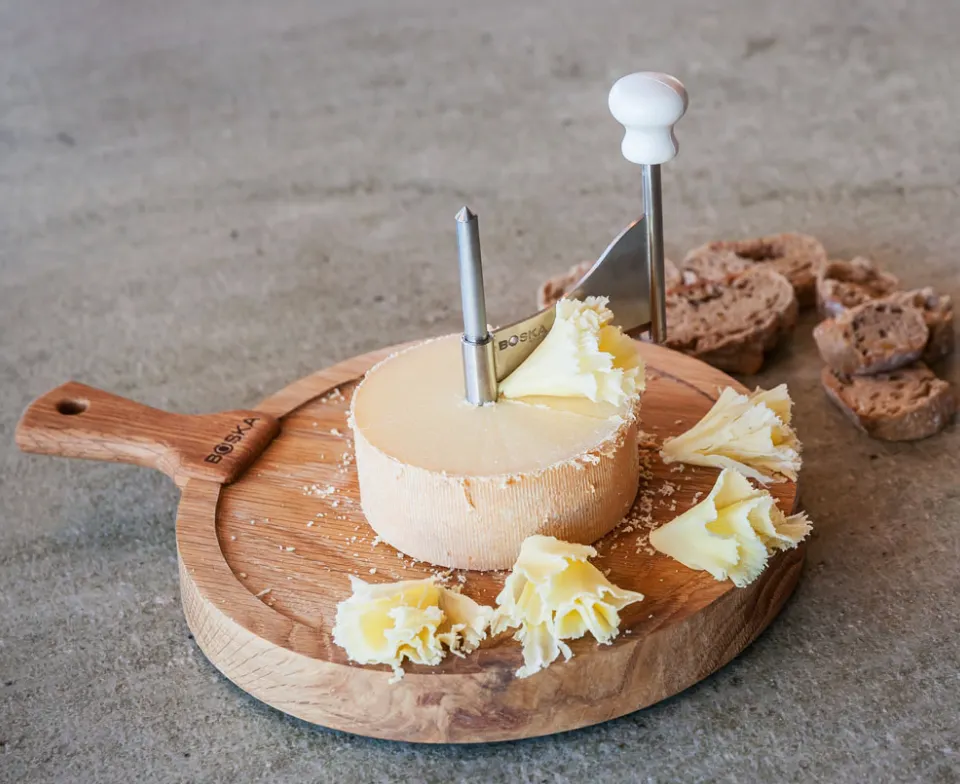 최소 2.5개월 동안 숙성 후 섭취하는데, 다른 치즈와 달리 그냥 자르는 게 아닌 ‘지롤(Girolle)’이라는 치즈 슬라이서를 사용하여 치즈를 얇은 카네이션꽃 모양처럼 긁거나 깎아내요. 이 과정에서 치즈 표면이 공기와 직접 접촉하면서 치즈 향이 더욱 풍부해진답니다. 과거에는 이 치즈를 결제 수단으로 사용하기도 했어요.
