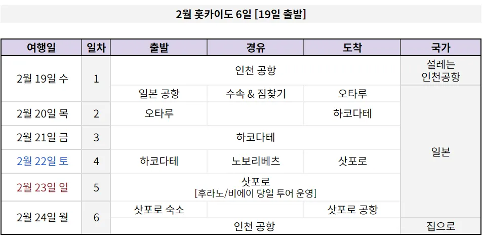 [한국 → 일본] 일본 신치토세 공항(CTS)에 2월 19일 11시 00분 전 도착 시 탑승 가능