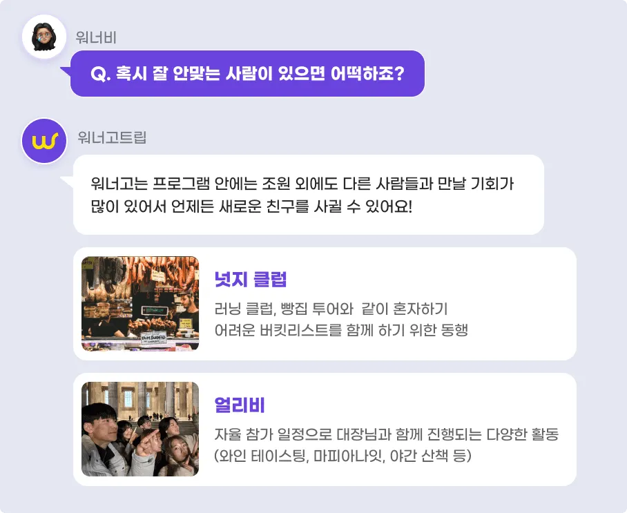 워너고트립은 그룹 자유 여행으로 도시 내에선 자유 여행을 하는 프로그램입니다.