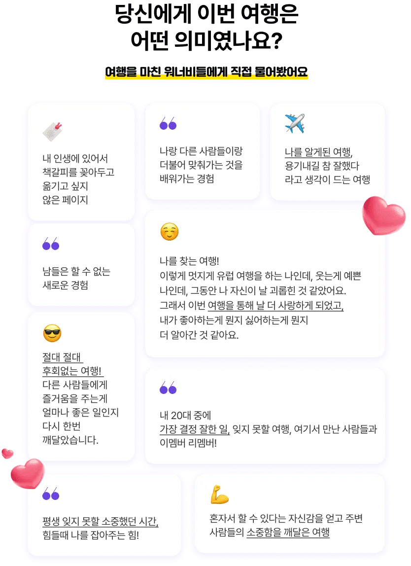 조원들과 함께 때로는 혼자서 자유롭게 나의 여행을 즐기세요