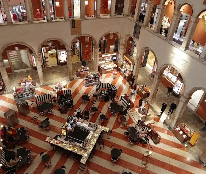 베네치아 본섬 중심에 있는 백화점(면세점)으로, 과거와 현재가 공존하는 고전적인 분위기를 느낄 수 있어요. 백화점 옥상 테라스에서 베네치아의 전경을 볼 수 있는데, 최소 2~3주 전부터 예약해야 하니 참고하세요!
