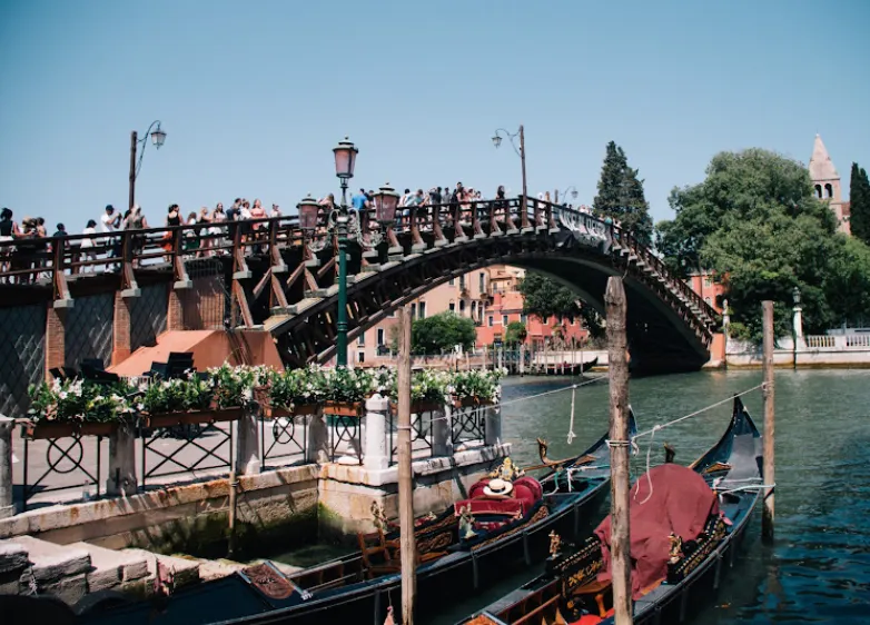 베네치아 대운하를 건너는 4개의 다리 중 하나로, 산 마르코와 도르소두로를 연결해요. 해 질 녘에 아카데미아 다리에 가면 산타마리아 델라 살루테 대성당 뒤편의 하늘이 주황색과 분홍색으로 아름답게 물드는 광경을 볼 수 있어요.