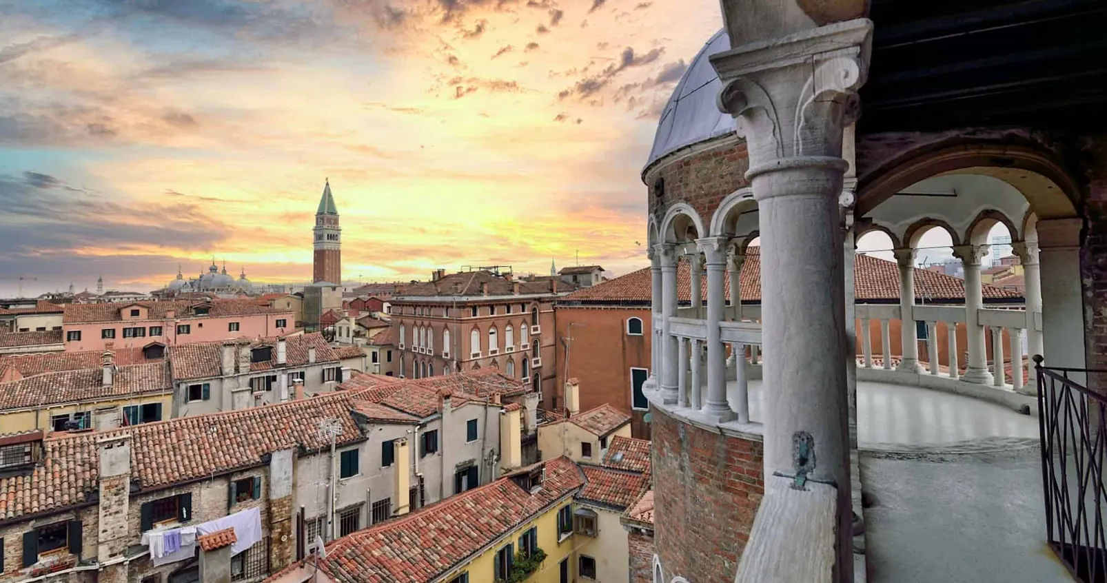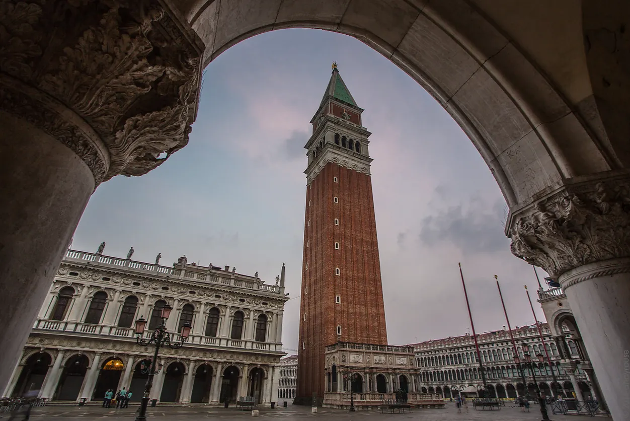 아드리아해에 펼쳐진 베네치아 전경을 한눈에 볼 수 있는 산마르코 대성당 종탑은 높이 99m로 베네치아에서 가장 높은 종탑이자 전망대예요. 9세기 등대로 지어졌으며, 중세 시대에는 두칼레 궁전 호위병의 막사와 감옥 등 다양한 용도로 쓰였고, 1609년 갈릴레오 갈릴레이가 망원경을 시연했던 장소로도 유명해요. 세계에서 가장 오래된 종탑 중 하나였던 이 탑은 1902년 갑작스럽게 무너졌는데, 이후 약 10년 간의 공사를 거쳐 과거와 동일한 외관과 내부 엘리베이터를 설치해 복원해 지금의 모습이 되었어요. 맑은 날에는 돌로미티산맥까지 볼 수 있다고 해요.
