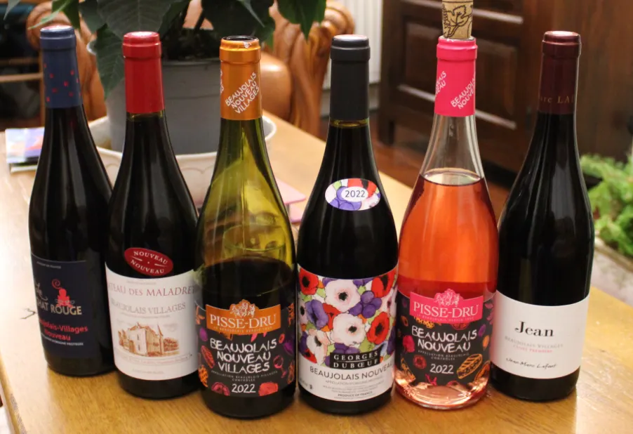 보졸레 누보(Beaujolais nouveau)는 프랑스 부르고뉴 보졸레 지방에서 재배된 가메 품종 포도로 만든 와인이에요. 그 해에 수확한 포도로 만들어 가장 처음 생산해서 마시는 햇 와인을이랍니다!