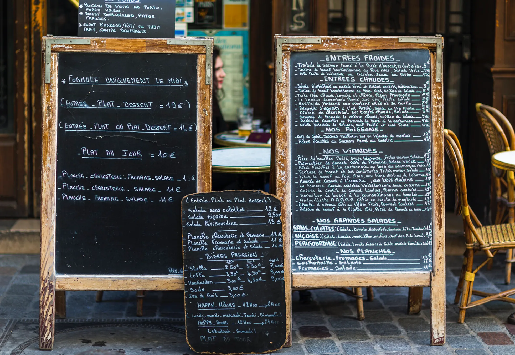 프랑스에서 진짜 맛집을 찾고 싶다면 메뉴판을 확인해 보세요. 정말 맛있는 곳들은 신선한 제철 식재료를 사용하고 그에 따라 수시로 바뀌는 메뉴로 인해 수정할 수 있는 칠판 메뉴판을 사용합니다. 대부분 이런 곳들은 음식에 진심인 주인과 셰프가 운영하는 경우가 많기 때문에 셰프가 당일에 직접 시장에서 좋은 재료를 구입해서 요리할 가능성이 높아요.