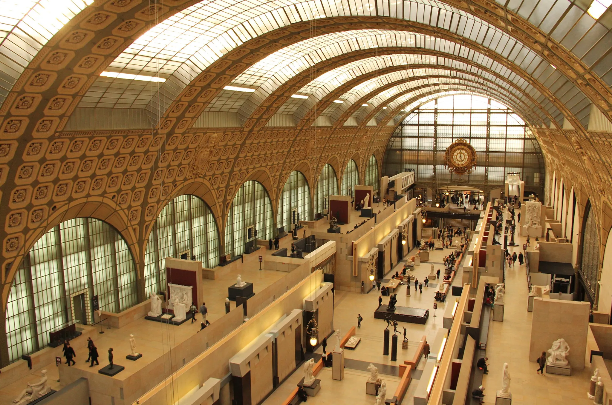 한때 오르세 미술관은 파리 지역 고속철도 RER의 C선에 해당하는 기차역이었습니다. 1900년부터 1939년까지 프랑스 남서부를 연결해 준 주요 역으로, 전쟁 중이나 그 외의 시기에는 소포 배송 센터로 사용되었어요. 영화 세트장으로도 사용되던 옛 역은 1986년 미술관으로 개조되었고, 기차역 이름(Gare d'Orsay)을 따 오르세 미술관이 되었습니다.
