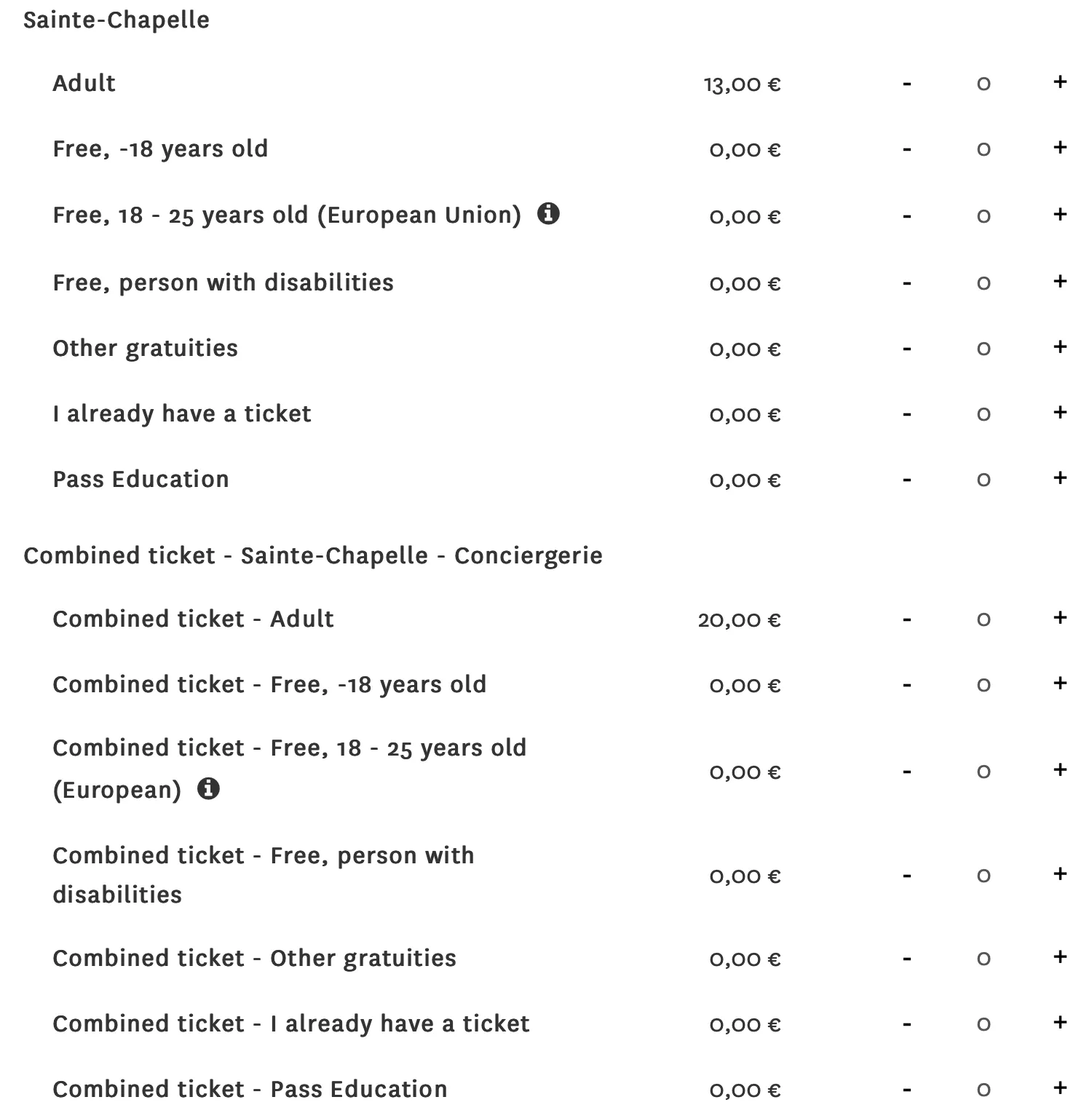 생트 샤펠 일반 예매권과 생트 샤펠-콩시에르주리 통합 예매권이 나뉘어 있으니 잘 확인해서 예매하세요
