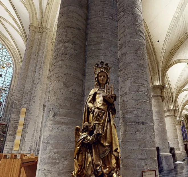 브뤼셀 시의 수호 성인인 성 미카엘과 성 구둘라에게 헌정되었으며, 고딕 건축의 가장 훌륭한 예 중 하나인 성당이에요.