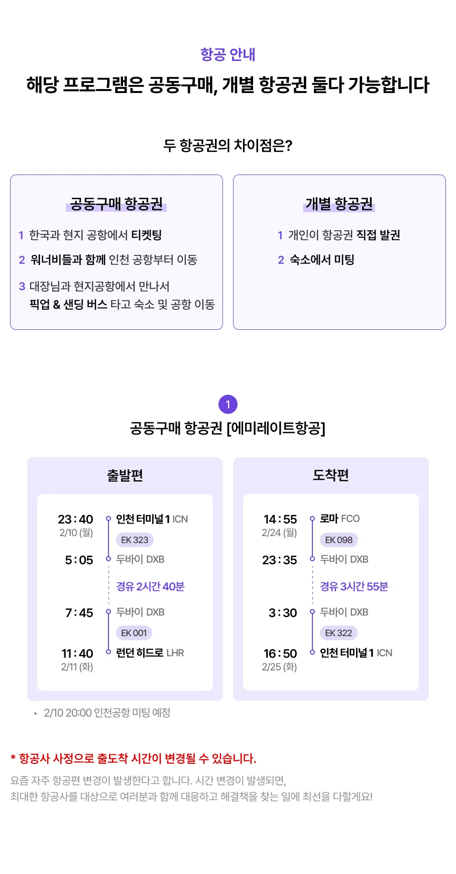 현지 사정에 따라 도시 및 일정이 바뀔 수 있습니다.