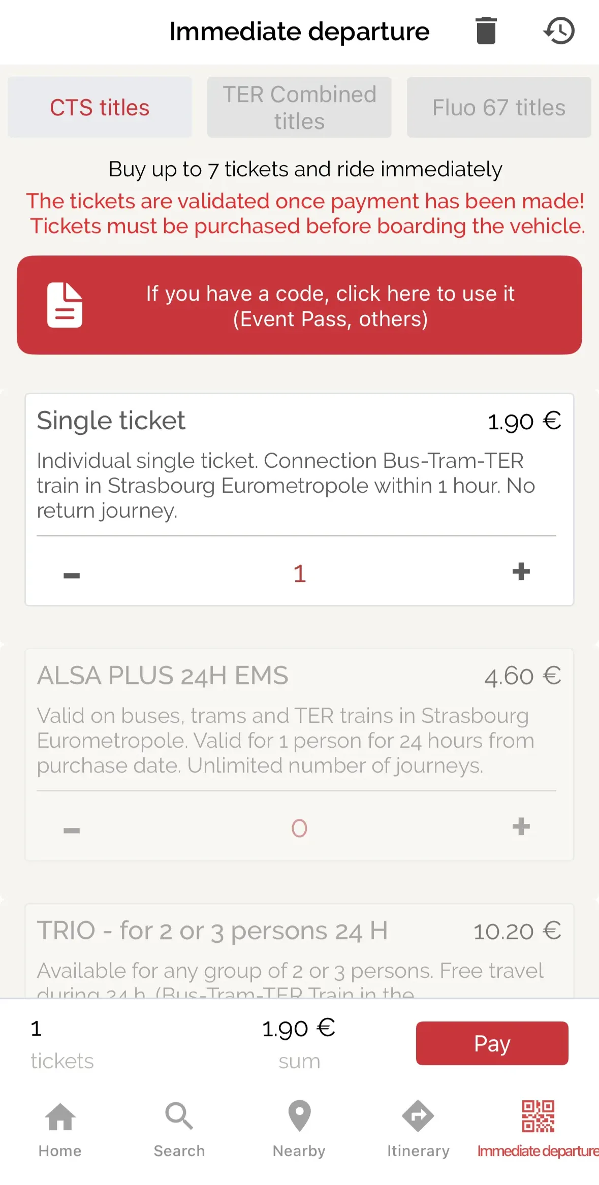 CTS transportion strasbourg 어플을 이용해 구매가 가능합니다.