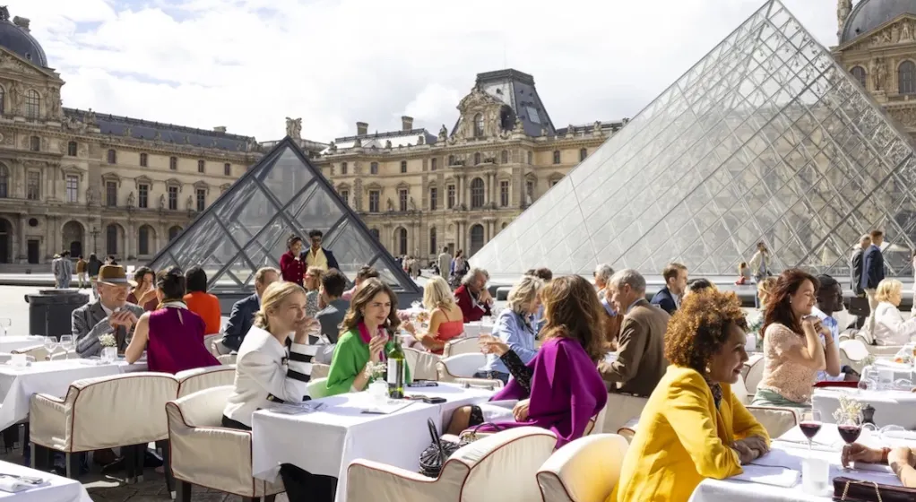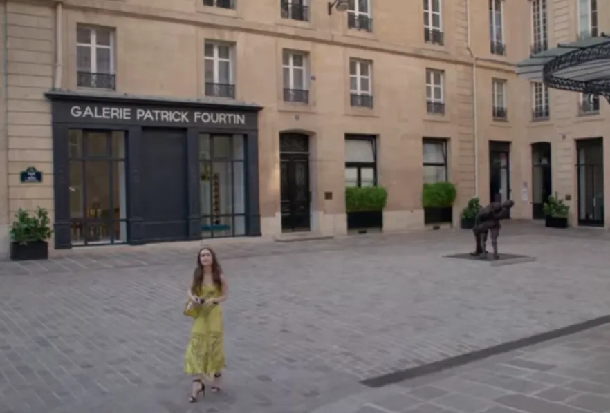 이 정원에서 에밀리와 민디가 함께 셀카를 찍는 미술 설치물 'Les Deux Plateaux’과, 정원 뒤쪽에는 에밀리가 테이블을 잡으려다 실패하는 미슐랭 스타 레스토랑 ‘Le Grand Véfour’가 있어요.