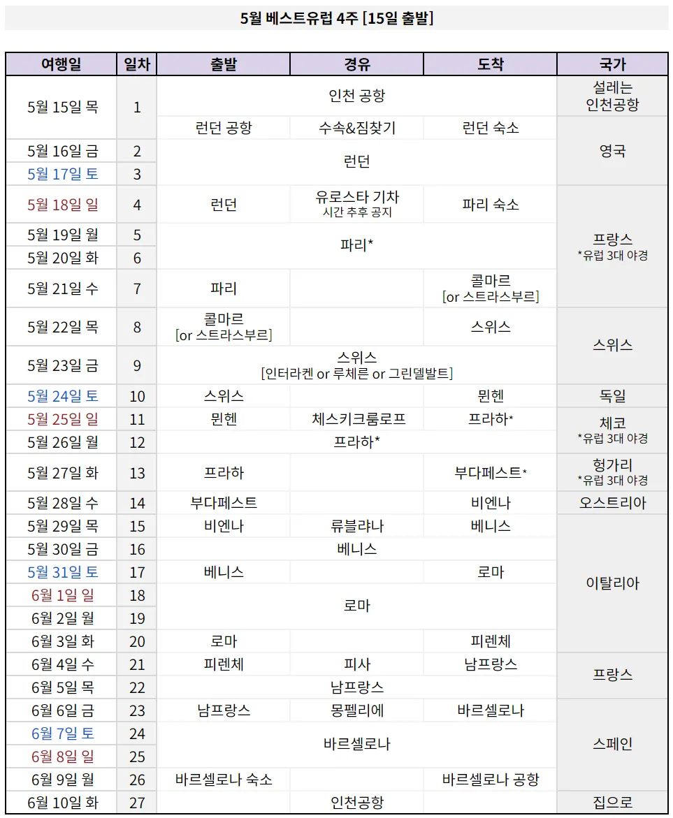 첫 유럽 여행이라면? 첫 유럽이라 핵심 서유럽과 동유럽은 모두 여행하고 싶어요.