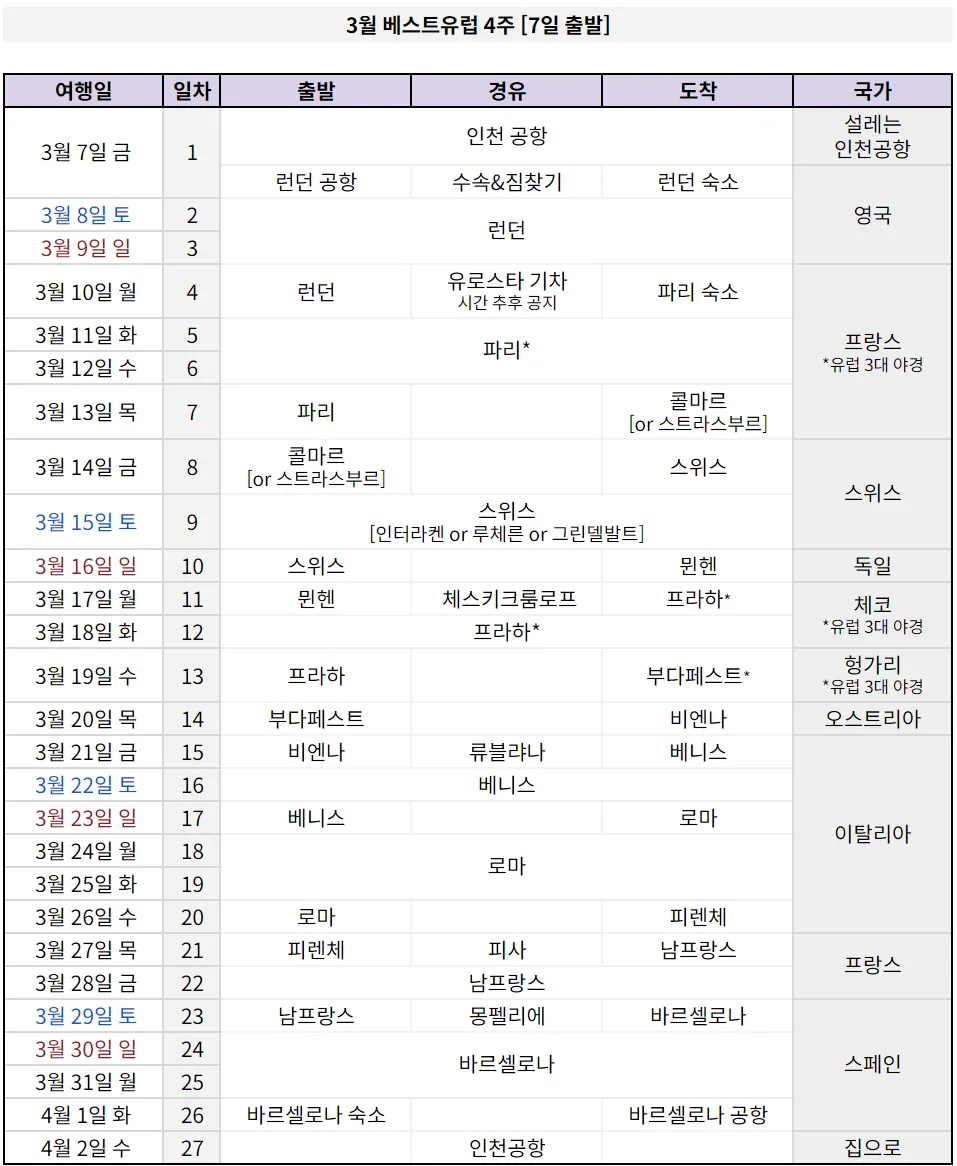 베스트유럽 4주, 어떤 점이 특별한가요?