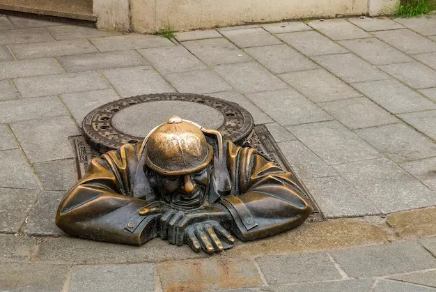 맨홀 아저씨 추밀 (Čumil) 동상: 맨홀 입구에 몸을 걸치고 쉬면서 행인들을 바라보고 있는 하수도 작업 노동자의 이색적인 청동상을 찾아보세요!