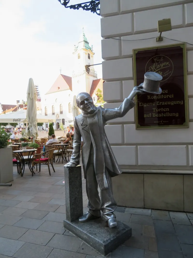쇤 나치 동상(Schöne Náci): 항상 잘 차려 입고 화려한 말을 걸어 사람들과 대화를 나누었고, 특히 여성들에게 친절하고 상냥한 성격으로 유명했던 인물이에요. 그의 외모와 태도 때문에 사람들은 그를 ‘아름다운 나치’라는 ‘쇤 나치 (Schöne Náci)라고 불렀습니다.