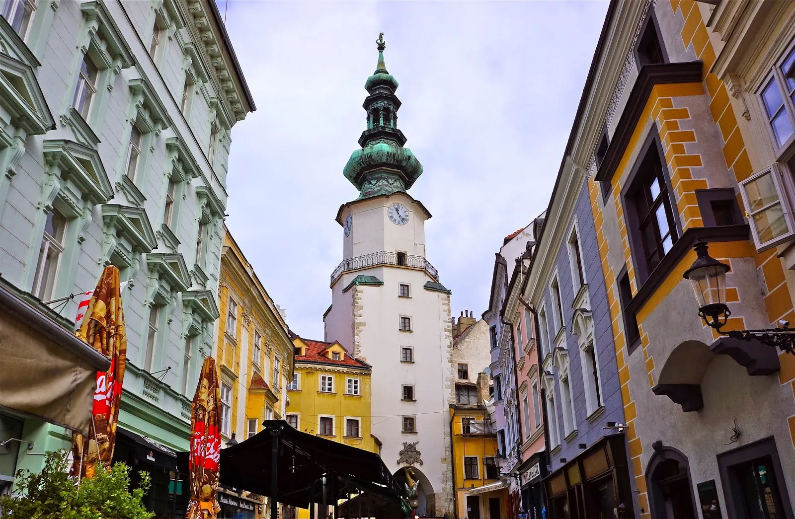 팔각 탑과 구리 지붕을 가진 문. 구시가지 여행의 관문이자 브라티슬라바의 상징으로, 구시가지로 통하는 성문중 유일하게 남은 미카엘 성탑 문이라고 해요. 이름에 걸맞게 대천사 미카엘이 용을 탄 동상이 탑 꼭대기에 세워져 있으니 앞을 지날 때 용이 어떻게 생겼나 유심히 살펴보세요!