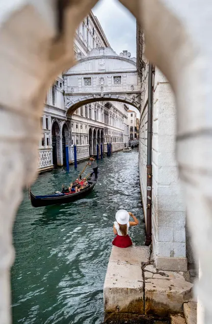 베네치아에 있는 400여개의 다리 중에 가장 유명한 다리 중 하나인 탄식의 다리는 두칼레 궁전과 프리지오니 감옥을 연결하는 다리에요. 과거 베네치아는 신분과 관계없이 누구에게나 엄격한 법을 적용하기로 유명했고, 이 감옥은 빛 한 점 들어오지 않고 물이 차올라 죽는 경우도 많았죠. 당시 죄수가 법정에서 중형을 선고받으면 감옥으로 가는 길에 마지막으로 이 다리를 건넜는데, 그 안에서 격자무늬 구명 사이로 베네치아의 모습이 힐끗 보였다고 해요. 그래서 이 다리를 건너는 죄수들이 ‘이 아름다운 곳을 언제 또다시 볼 수 있을까…’라고 탄식을 했다고 해서 붙여진 별명이에요. 바람둥이로 유명한 카사노바도 풍기문란죄로 이 감옥에 갇혔었는데, 최초로 탈출에 성공한 죄수로 알려져 있어요. 그리고 노을이 질 때 탄식의 다리 앞에서 키스하면 영원한 사랑을 하게 된다는 전설도 있답니다!
