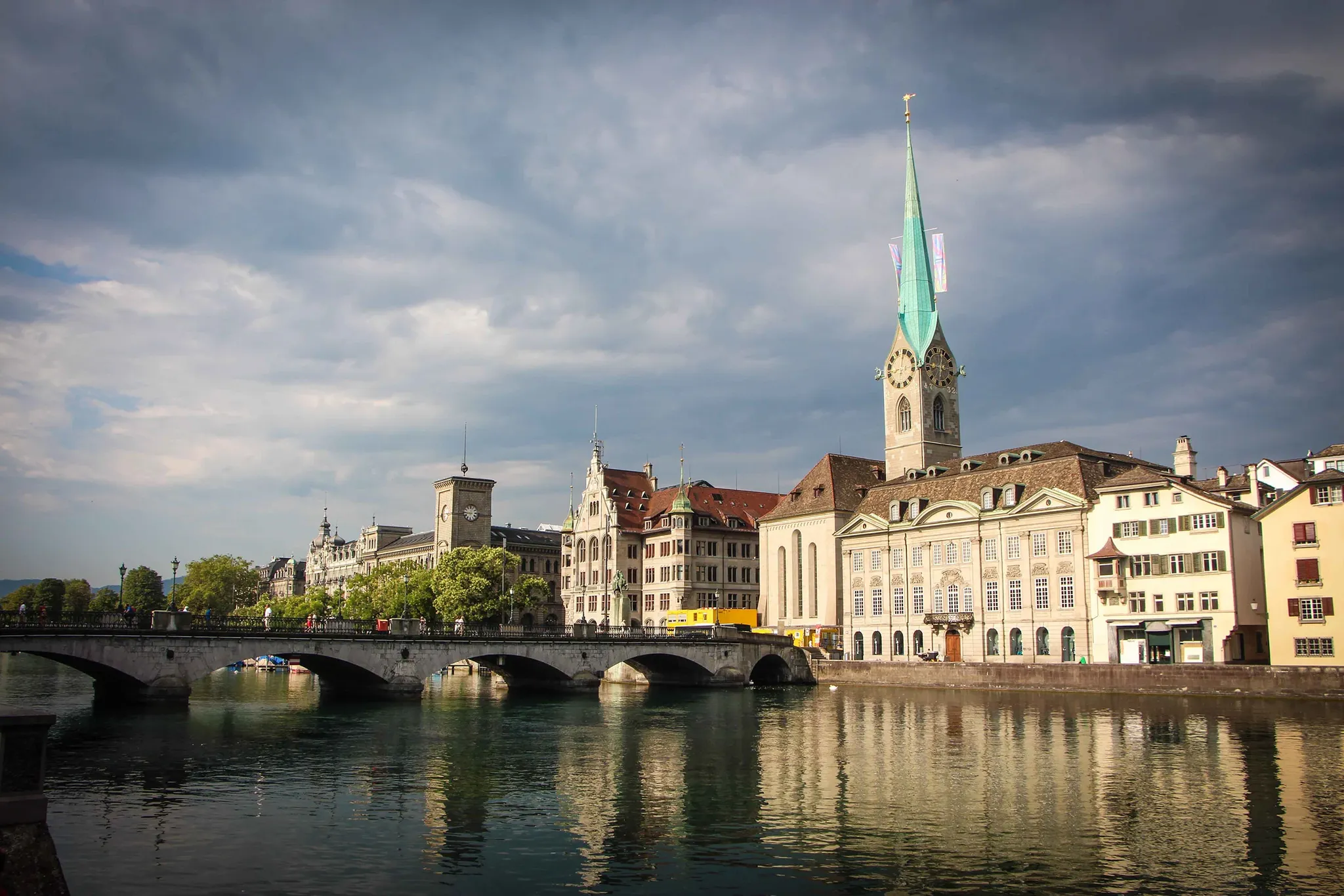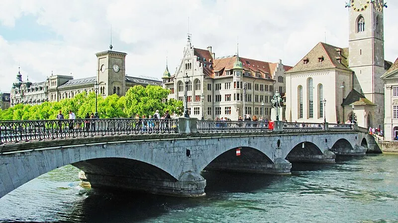 뮌스터 다리는 중세 도시 취리히의 역사적 중심지에서 리마트 강 위를 가로지르는 다리입니다. 스위스 중요 문화재로 지정되어 있으며, 프라우뮌스터와 그로스뮌스터 사이에 있어서 이름이 이렇게 되었어요! 드라마 ‘사랑의 불시착’에서 윤세리가 리정혁을 찾아 헤메는 장면에서 등장하는 바로 그 다리입니다.
