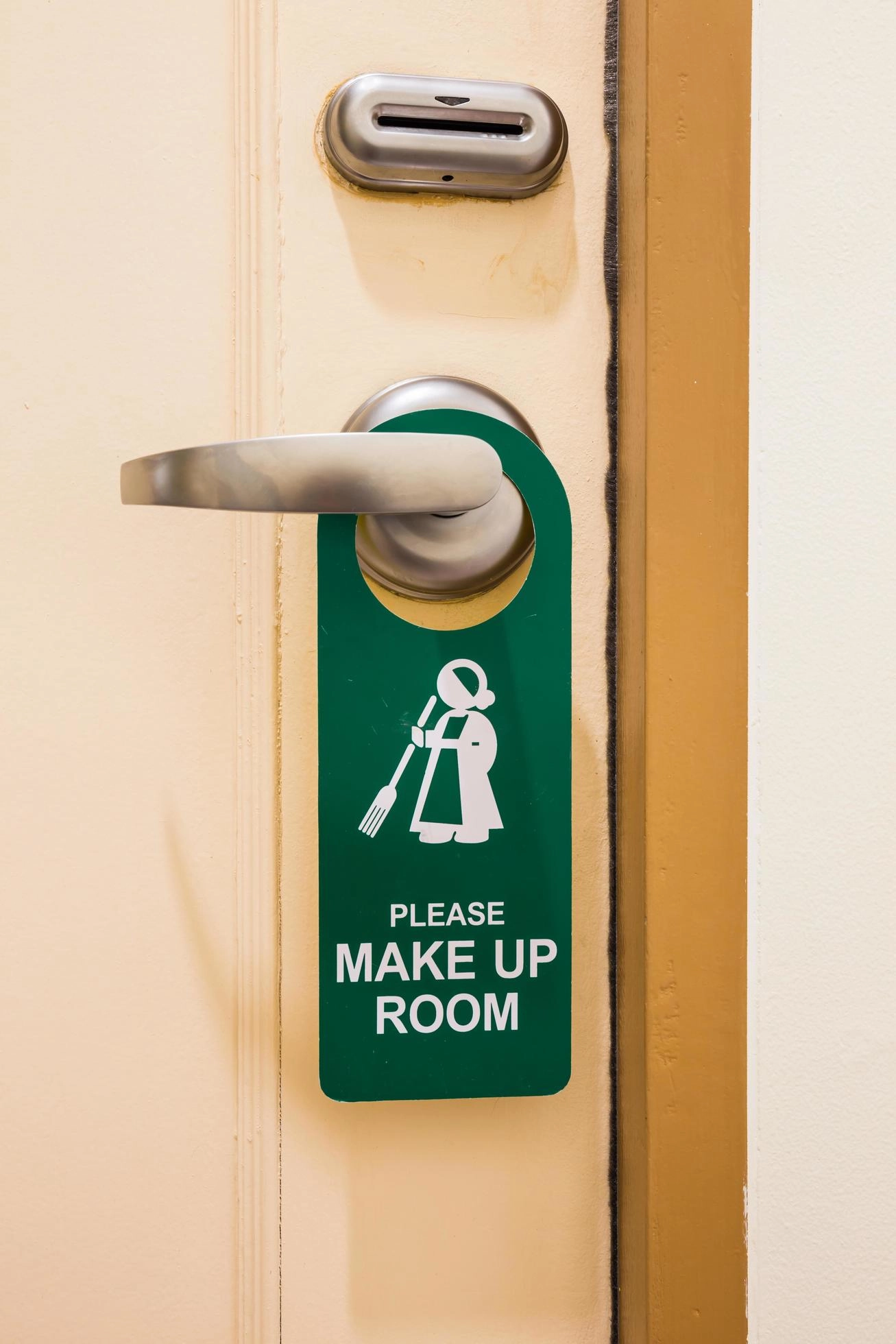 방 내부에 하우스키핑 요청 카드가 따로 있다면, 꼭 문고리에 걸어 두어 신청하도록 하세요!