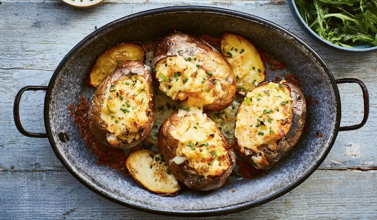 재킷 포테이토는 버터를 넣고 구운 감자로, 때로는 치즈, 사워크림, 그레이비 소스, 구운 콩, 다진 고기나 콘비프와 같은 토핑을 추가하기도 해요.