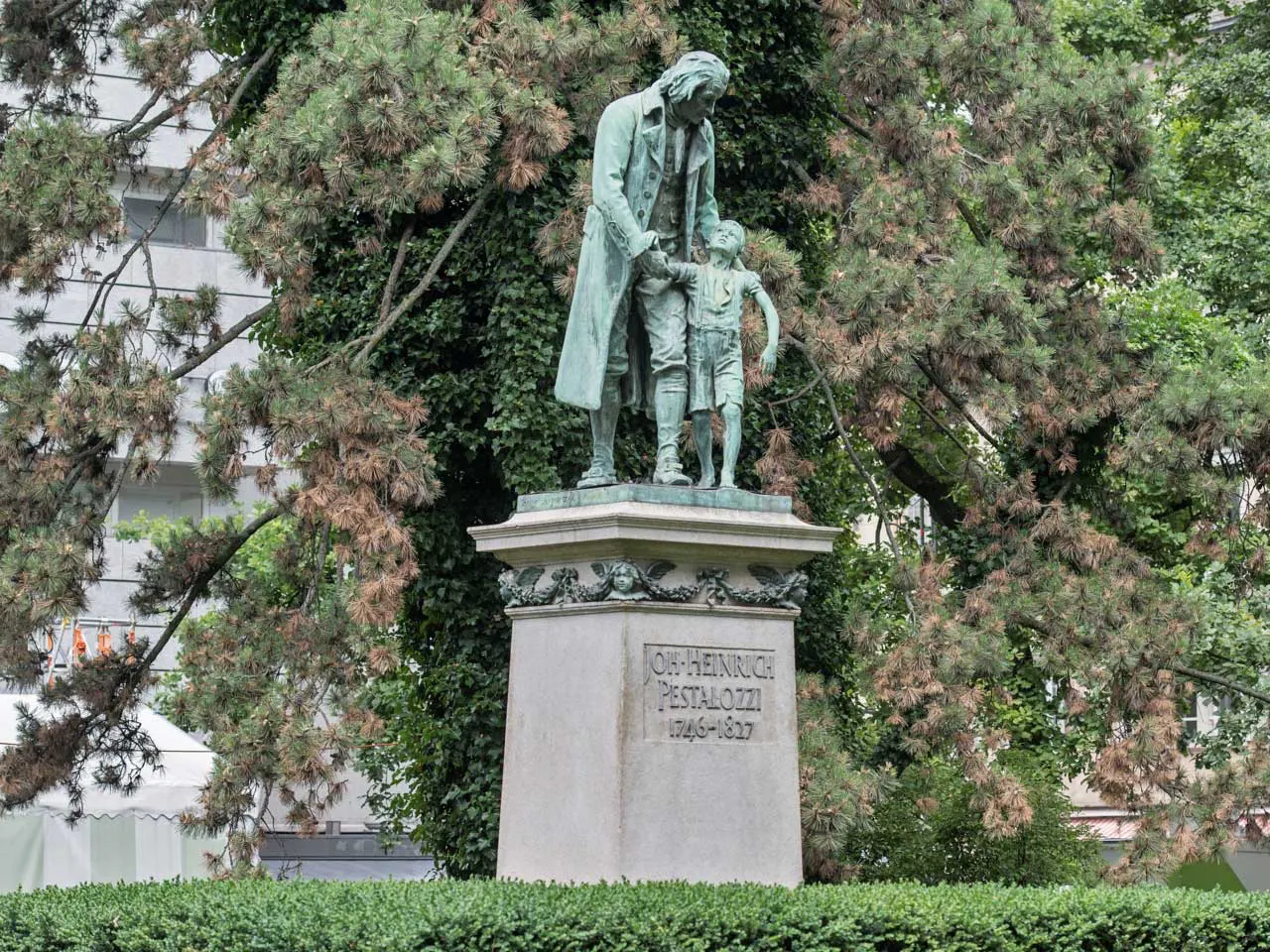 반호프 거리에는 ‘페스탈로치 기념 공원’이 있어요. 페스탈로치(Johann Heinrich Pestalozzi)는 취리히 출신의 스위스 교육학자이자 사상가였는데, 현재까지도 ‘근대 교육의 아버지’로 추앙받고 있답니다.