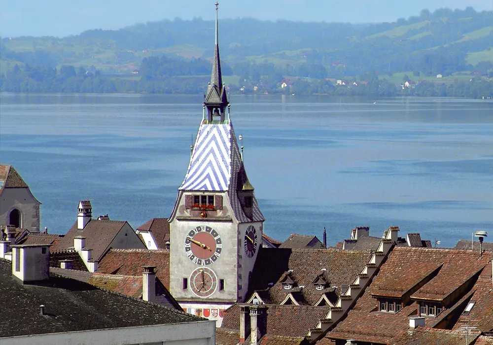 유럽에서 가장 독특한 시계탑 중 하나라는 지트탑은 이름 그대로 ‘시계탑’의 역할을 하고 있어요. 남쪽 정면에 그려진 거대한 두 시계는 약 4m의 크기라 아주 멀리서도 시간을 읽을 수 있게 만들어졌답니다. 그 덕분에 호수에 있던 어부들도 시간을 볼 수 있었다고 해요. 또한 멀리까지 알려야 하는 만큼, 도달할 때까지 지연될 시간을 고려해 늘 1분 빠르게 시간을 알려주는 과학적인 시계랍니다. 여름철에 방문하면 시계가 울리는 과정을 볼 수 있어요.