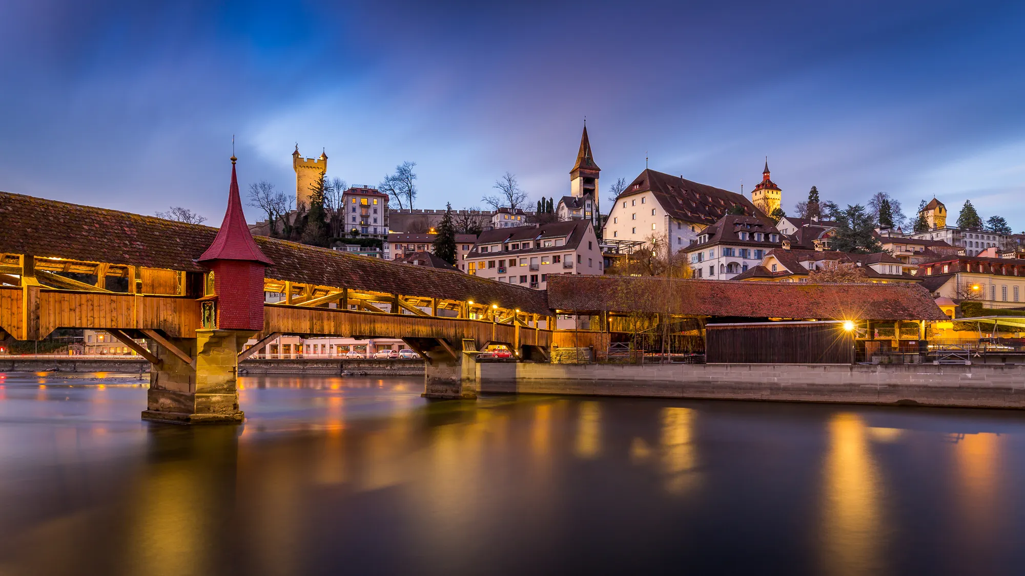 ‘루체른’ 하면 떠오르는 가장 유명한 랜드마크죠. ‘지붕이 있는 목조 다리’ 중 유럽에서 가장 오래된 다리로, 특이하게도 강을 대각선으로 가로지르고 있어요. 목조 다리이기 때문에 화재에 취약해, 1993년에 발생한 큰 화재로 인해 다리의 약 70% 이상이 전소되는 안타까운 일이 있었답니다. 현재는 대부분 복원되었지만, 다리의 지붕 내부에 그려져 있던 그림들은 여전히 복구 작업 중이라고 해요.